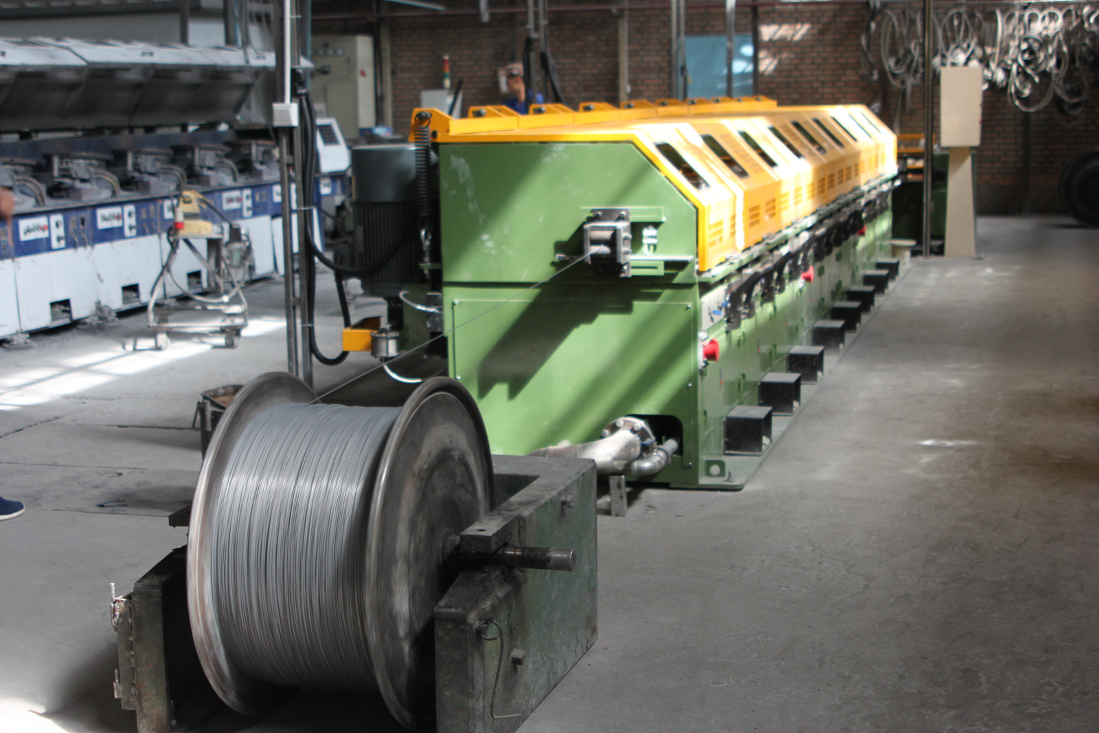 圖為該公司8350拔絲機正在生產(chǎn)圓珠筆頭用不銹鋼材料。